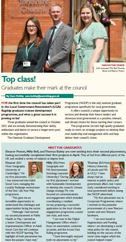 - East Riding of Yorkshire Council Local Government Graduate Programme Graduate Management Trainee – Oct 2021 – Dec 2022